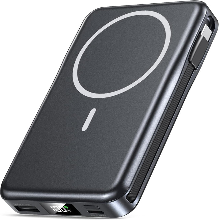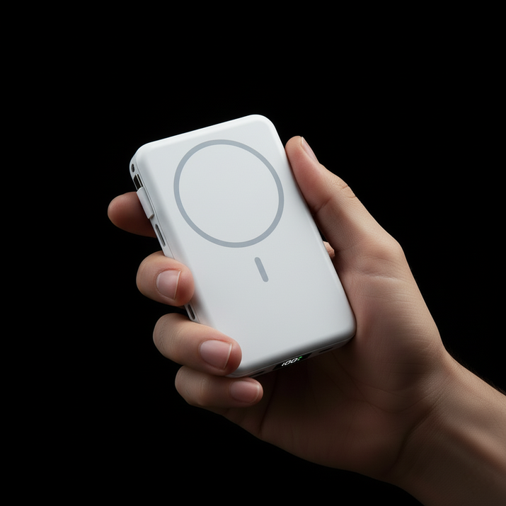 Never run out of battery again with The VoltMag, a sleek 10,000 mah MagSafe battery pack designed for life on the go. Its magnetic snap-on design keeps it securely attached to your phone while delivering fast, reliable charging—no cords required. Slim, lightweight, and travel-ready, it fits effortlessly in your pocket or bag. The LED battery indicator shows your remaining power, and built-in safety protections keep your phone safe from overheating and overcharging. Perfect for busy days, travel, or staying connected wherever you are, The VoltMag ensures your phone is always ready when you are. 🧲 MagSafe compatible with all iPhone 12 – 17 models 🔋 10,000 mAh powerful capacity