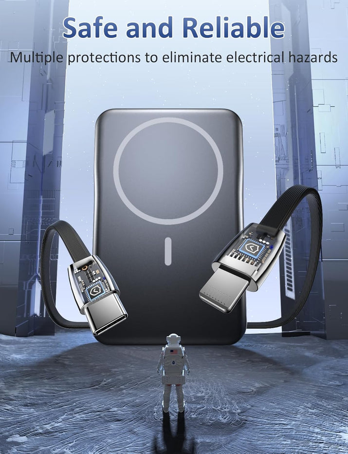 Answer 2: The power bank is designed with advanced multi-level protection, which includes safeguards against over-temperature, over-current, and short circuits. These features ensure both your devices and the charger itself remain safe while in use.